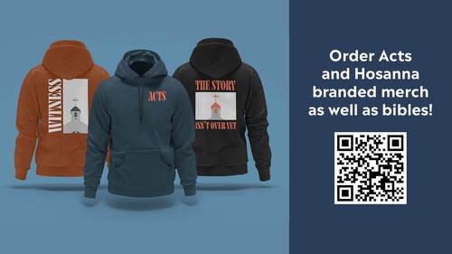 Go to our online store to order Acts and Hosanna branded merch as well as Bibles!